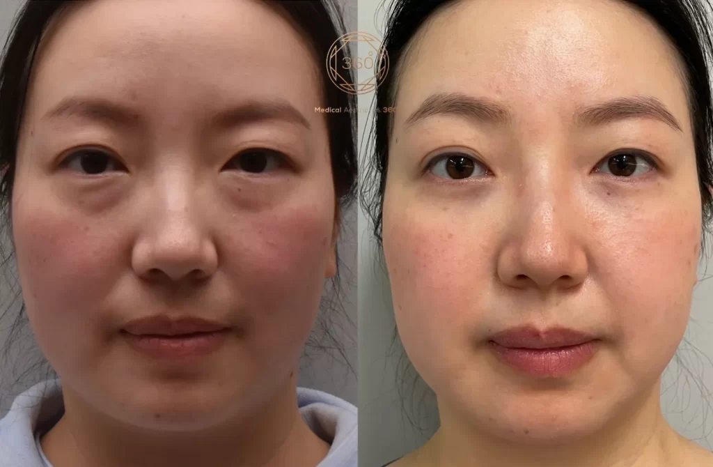 Her goal was not to change how she looked, but to soften the under-eye fullness and achieve a smoother, more refreshed appearance. After consultation, a personalised treatment plan was designed to improve the under-eye contour while keeping the result natural and balanced with her features.