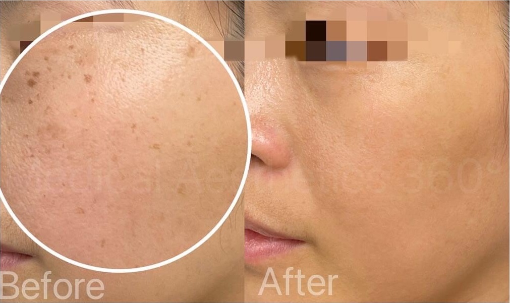 During her consultation with Dr Chun-Yen Huang (MED0001187421), a detailed skin assessment revealed mixed pigmentation — freckles and sun-induced pigmentation across the upper cheeks and temples. Dr Huang discussed a tailored, staged treatment plan designed to gently lift pigmentation while improving overall tone and brightness.