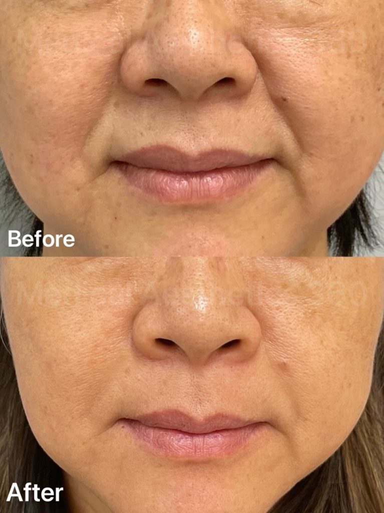 This patient in her 60s visited Medical Aesthetics 360° with concerns about increasingly visible nasolabial folds (the lines running from the nose to the corners of the mouth). With natural ageing, collagen reduction, and gradual loss of facial support, these folds had become more pronounced over time, making her feel her face looked tired and older than she felt. Her goal was to achieve a younger, refreshed appearance while maintaining a natural look that still felt like herself.