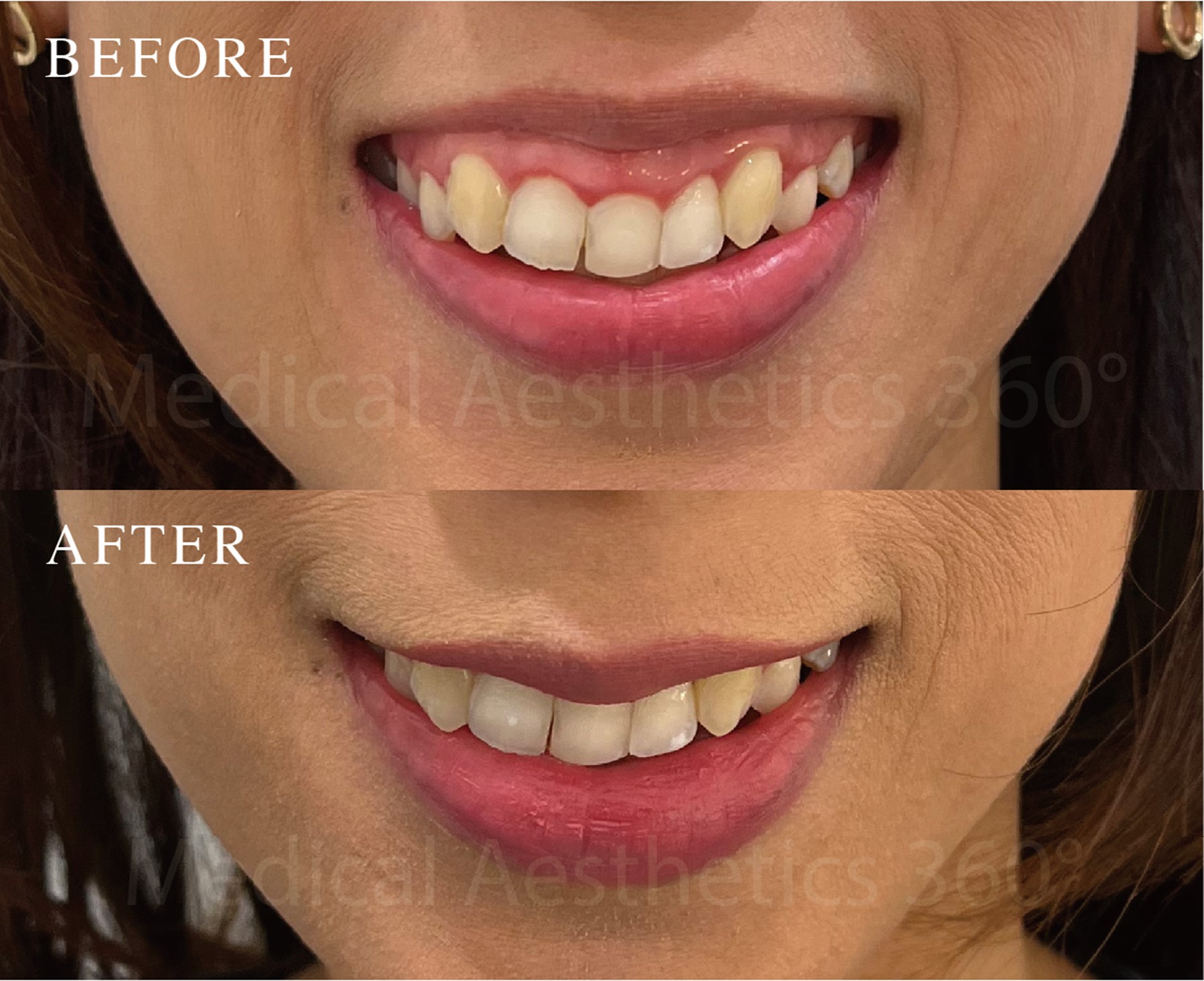 Story This patient visited Medical Aesthetics 360° with concerns about visible signs of ageing, particularly the deepening of her nasolabial folds (smile lines). Over time, natural collagen loss and changes in facial support had caused the smile lines to become more prominent, affecting her overall facial harmony and making her